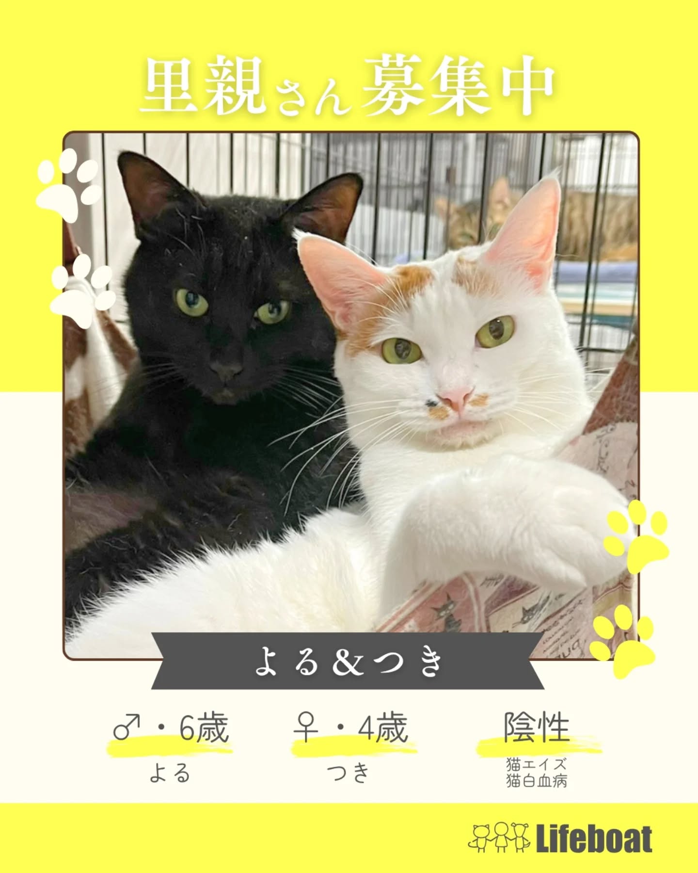 - つきちゃんがよる君大好きでとてもじゃないけど引き離せないので、2匹一緒に迎えてくださるご家族様との出会いを待っています。
