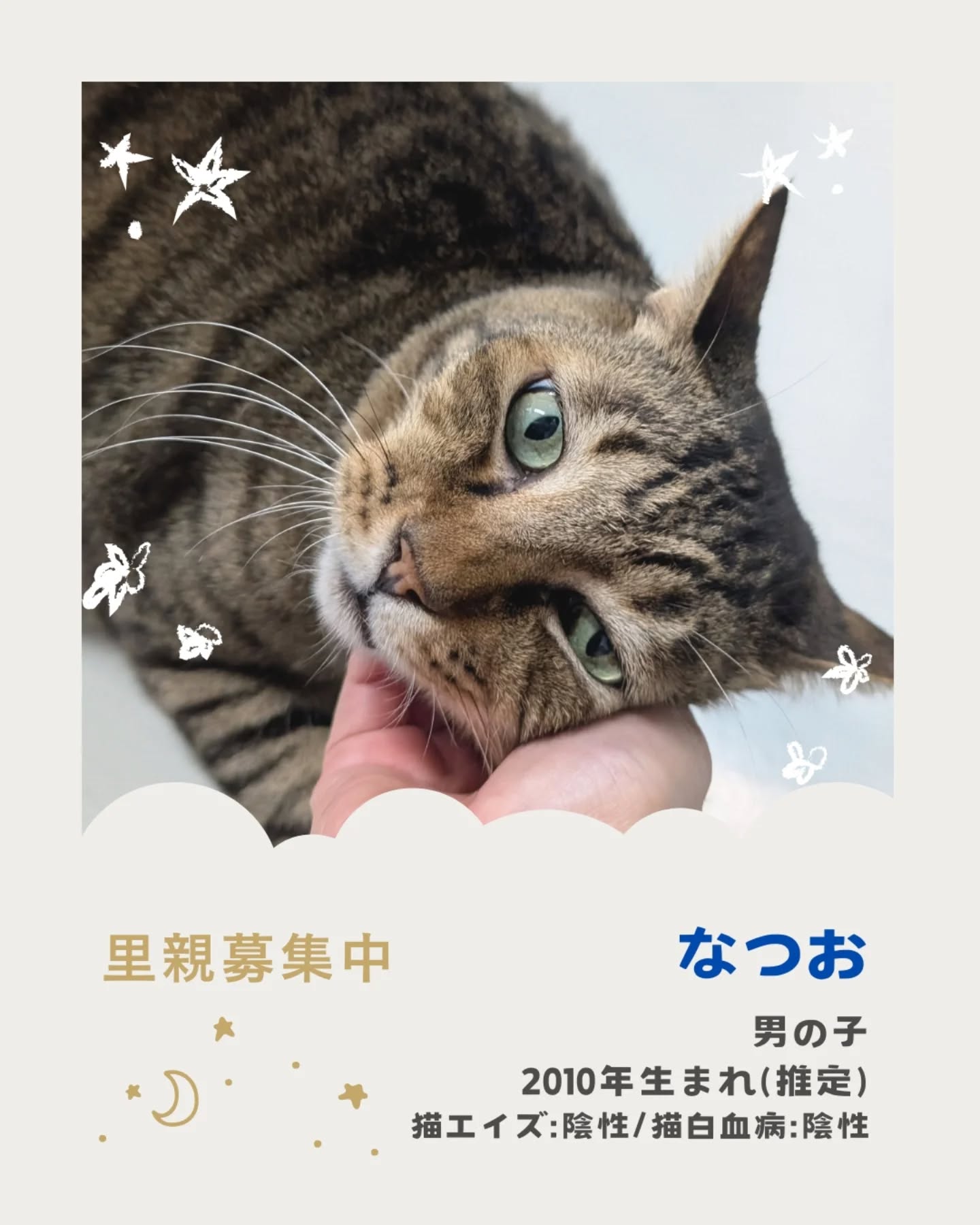 - 環境の変化への順応性が高く、新しいおうちでも食欲と甘え力が衰えないのもなつお君の魅力の一つ。