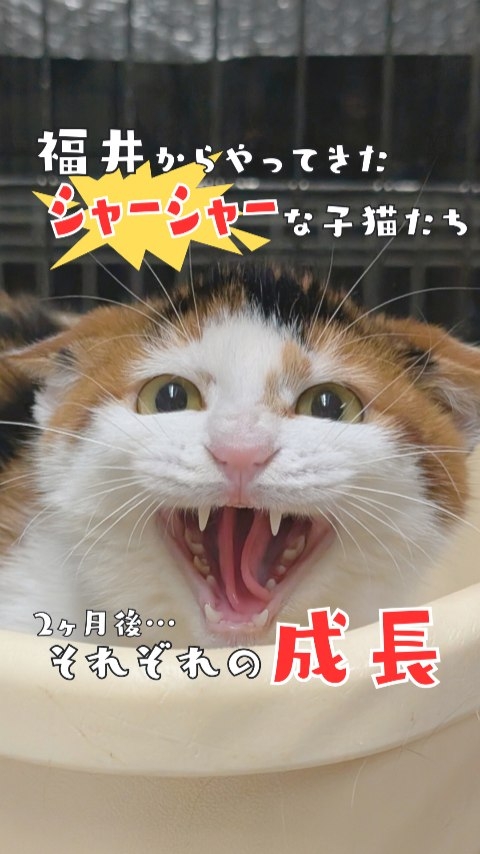 - シェルターに来てからずっと、ずーっと怒り続けています。写真がシャー!かイカ耳シャキーン!のどちらかしかないので、本当に怒り続けていることが伝わるのではないでしょうか…。
