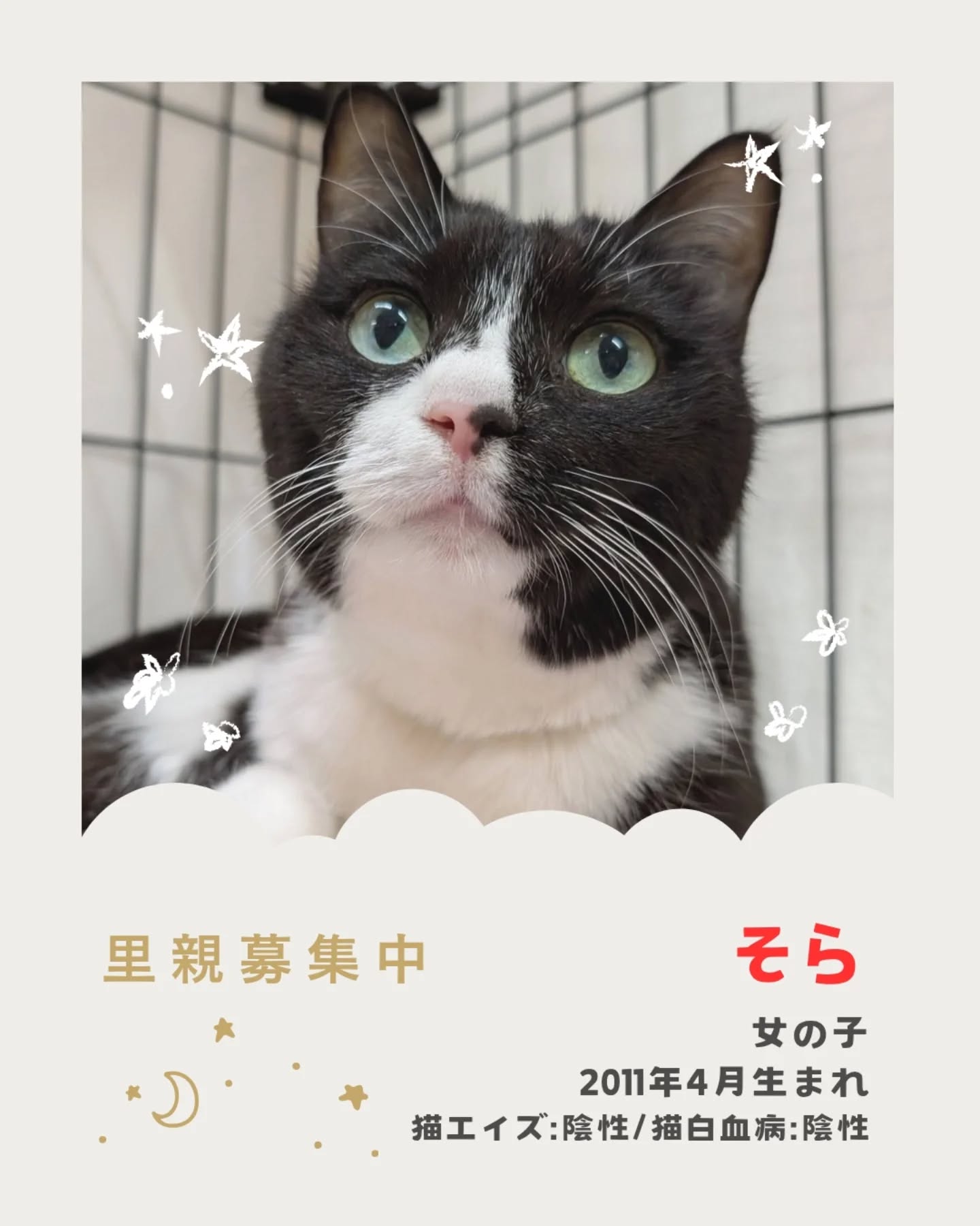 - そらがあんまり淋しがって人恋しくて鳴き続けるので猫のふれあいボランティアの募集を始めてしまったほど、本当に本当に人が大好きです。「人のそばにいられるのが何よりも幸せ!!!」と全身全霊で愛を叫んでくれます。