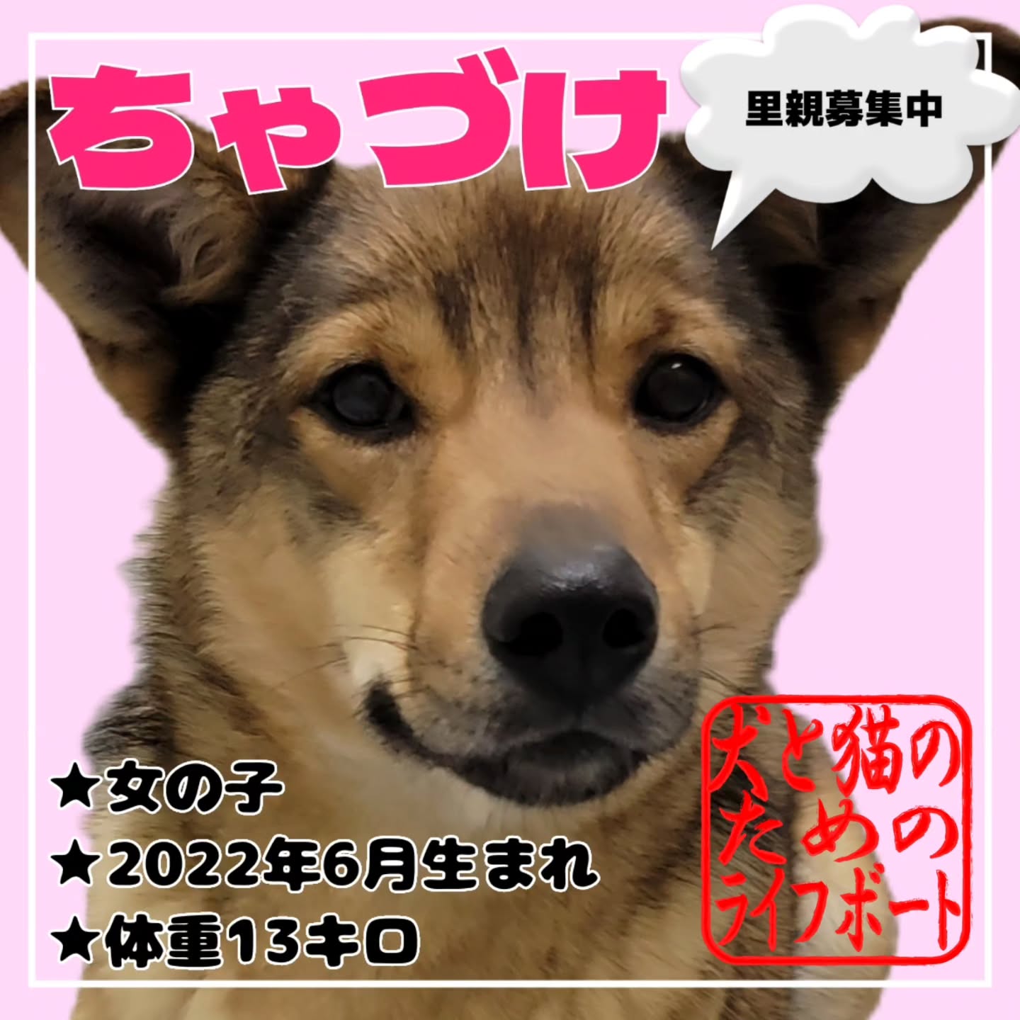 シェルターで過ごして一年以上経つのにまだまだ謎多きちゃづけ。ミステリアスで特大ボイスな彼女の気持ちを一つずつ解明してくれるご家族様との出会いを待っています。