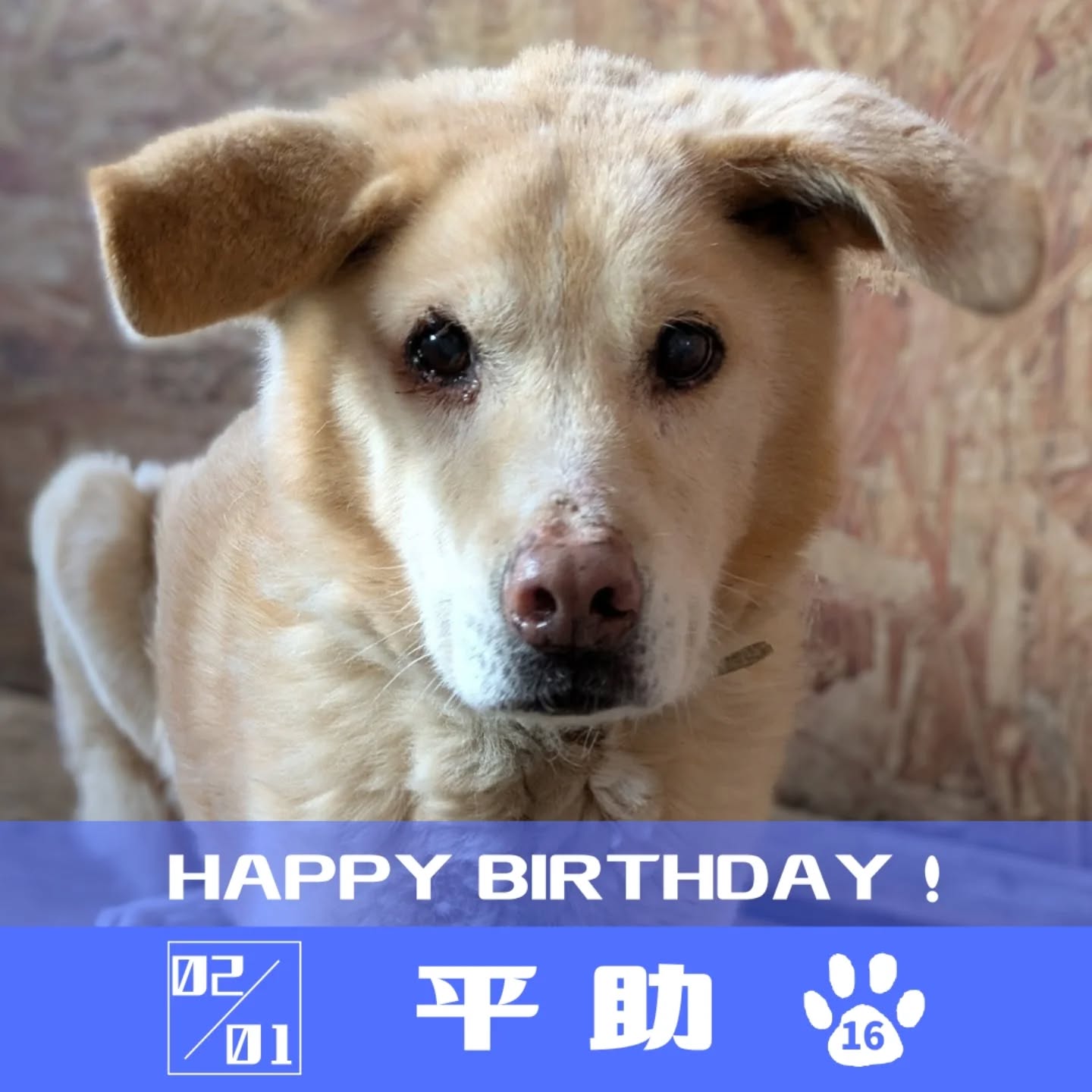 シェルターに帰ってきて早12年。28㎏の大型犬ながら、元気に16歳のお誕生日を迎えることができました。